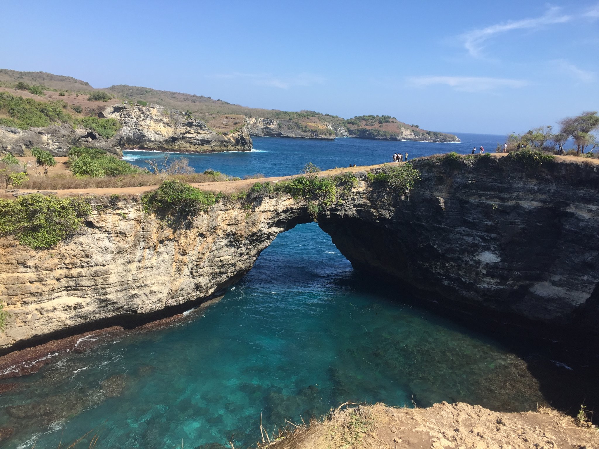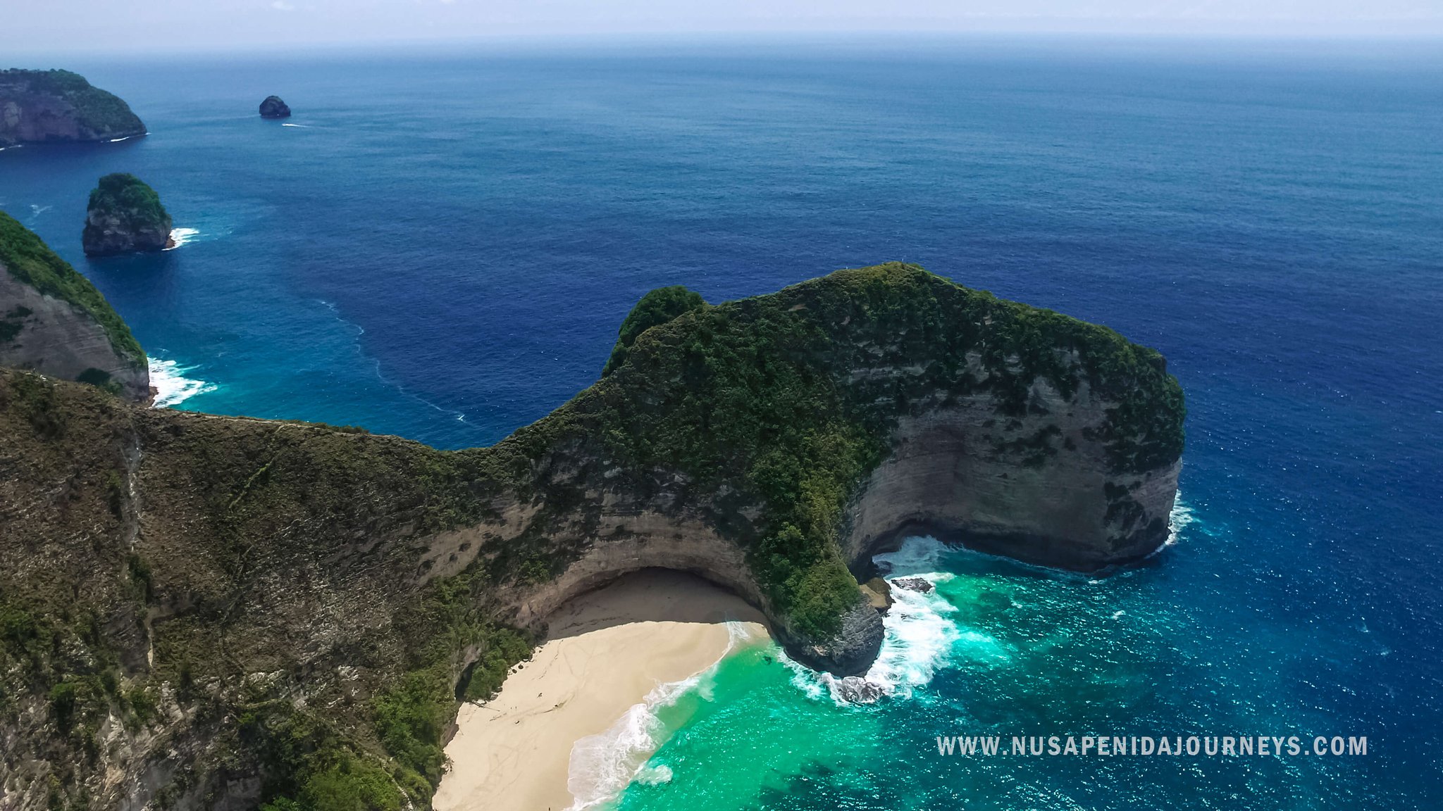 Following the carefully cut path along the steep jutting hilltop ridge you are rewarded with incredible east and west views of the magnificent cliffs of Nusa Penida. After the bird's eye view of the rich blue sea there is a fun winding trek down to the white sands of Kelingking Beach.